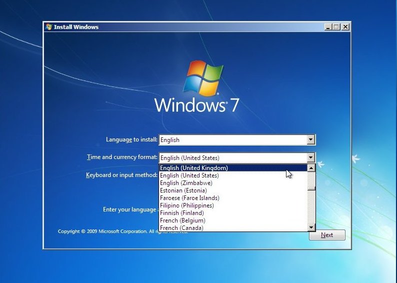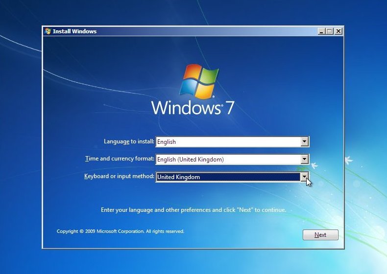 Next set your Keyboard Language. This may have changed correctly when "Time and Currency" option was selected, if not change as needed. Click "Next£ to continue.
