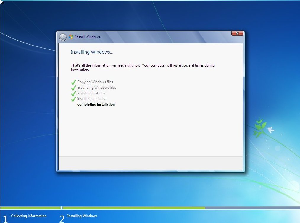 Now another screen appears, setup is "Starting Windows 7's" services....