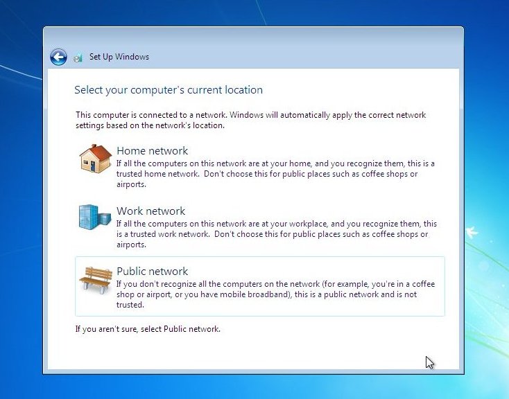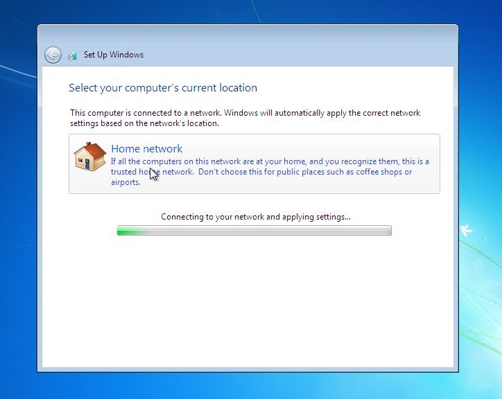 Windows 7 setup will now connect to your network , and setup required settings, depending on your choice in the previous memory....
