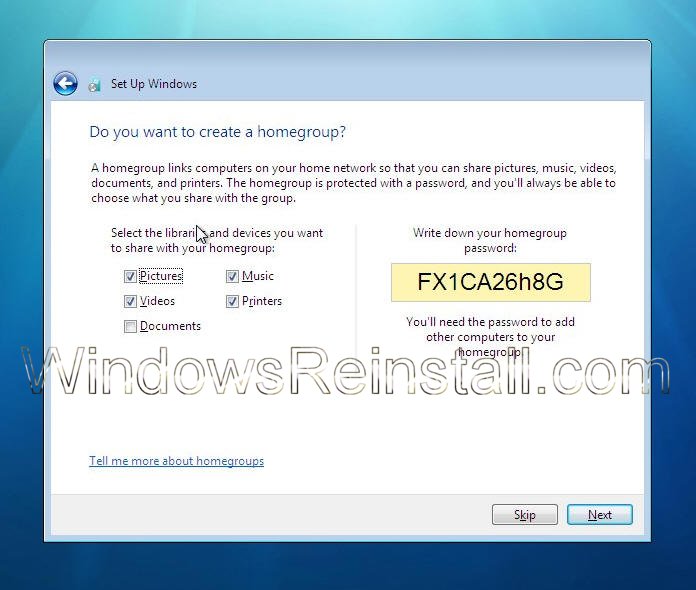 Now your Network configuration, if you want to setup the new "homegroup" network system for easy to configure, password protected configuration, then use this option.