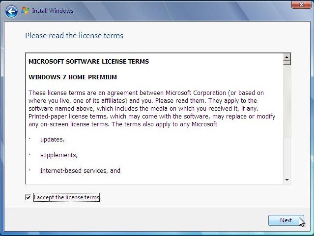 ....read them click on "I accept the License terms", then click "Next" to continue. If you don't agree then this is as far as you can go :(